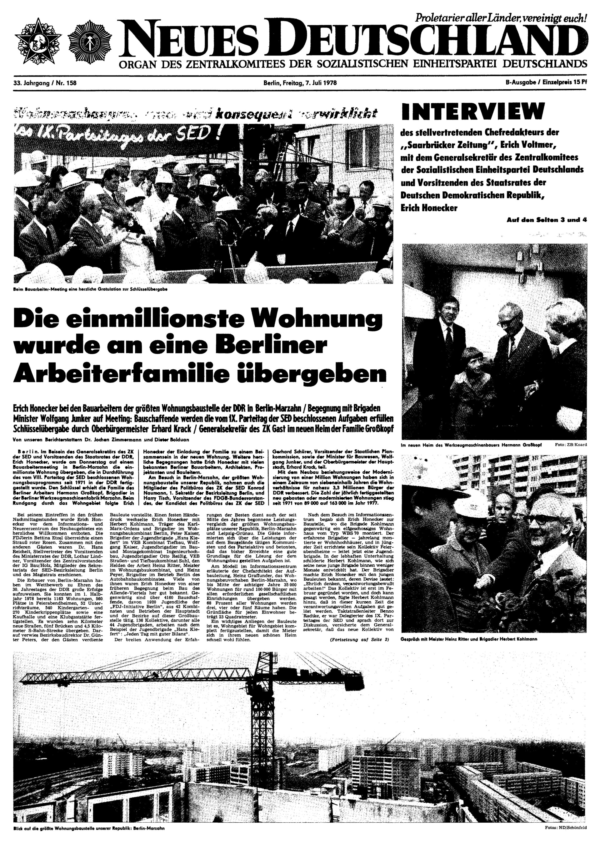 Neue, größere Stadt. Erich Honecker übergibt die einmillionste Wohnung in Berlin-Marzahn