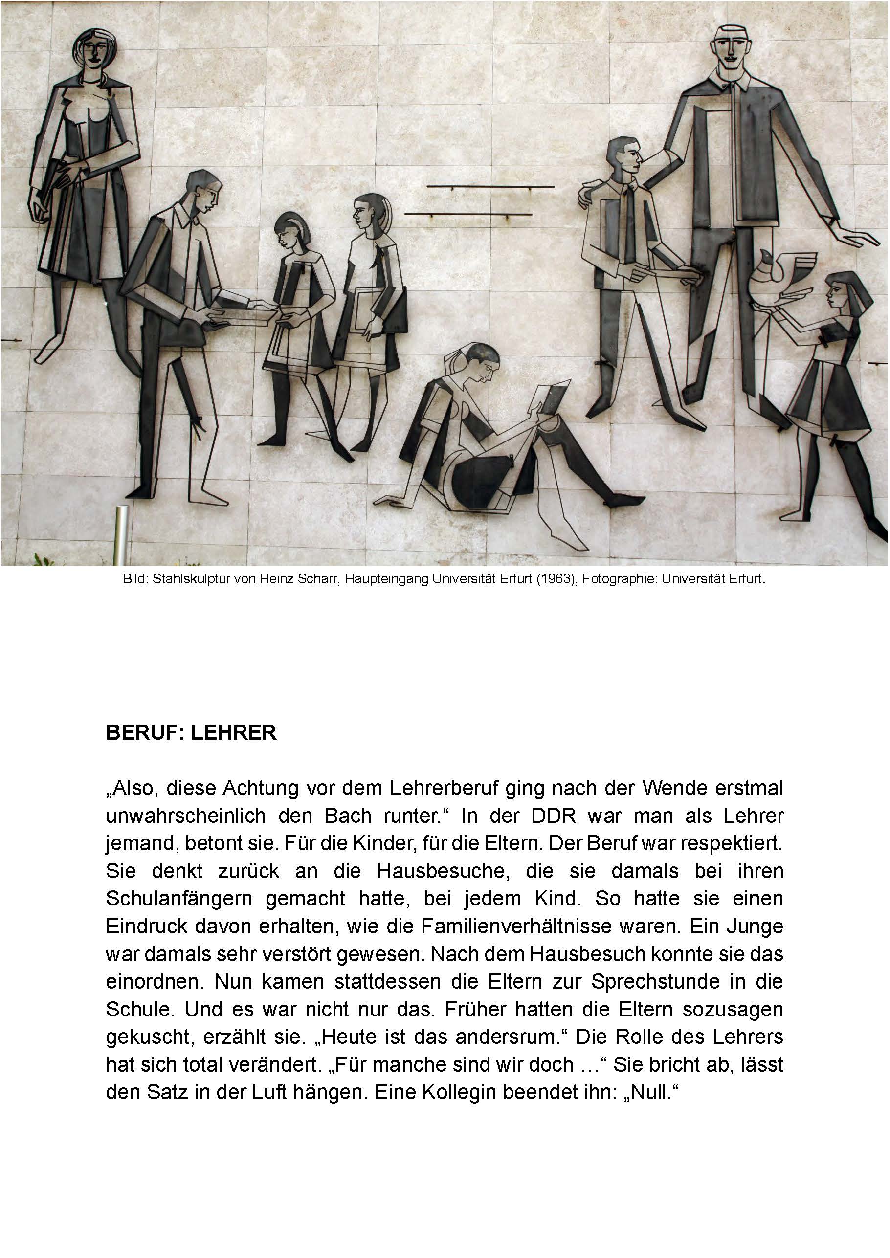 Wie berührte der gesellschaftliche Wandel nach 1989 die berufliche Identität und Selbstwahrnehmung der Lehrkräfte? Vom Erleben beruflicher Verunsicherung und eines gefühlten Autoritätsverlustes im Schulalltag erzählt die Anekdote ehemaliger DDR-Heimatkundelehrer:innen. Sie spiegelt die tiefgreifenden Umbrüche im Bildungssystem aus Sicht der Beteiligten.