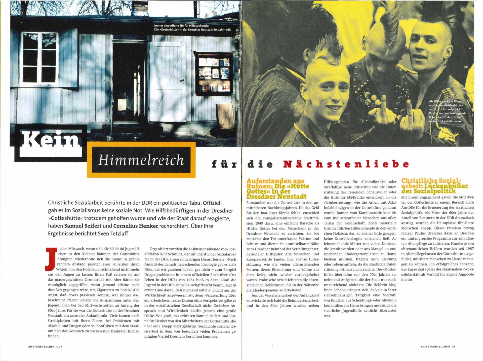 Die „Gotteshütte” der evangelischen Kirche in Dresden bot Hilfe für Menschen, die vom sozialistischen Staat übersehen oder ausgegrenzt wurden: Arbeitslose, Alkoholkranke, Jugendliche in Konflikt mit dem Staat. Trotz staatlicher Repression und Stasi-Überwachung blieb sie ein wichtiger Freiraum. Solche alternativen Räume zeigen, wie innerhalb der Gesellschaft vom Staat gesetzte Grenzen hinterfragt und unterlaufen wurden.