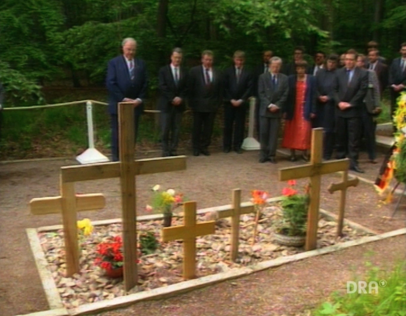 Dass Geschichtskultur Anfang der 1990er Jahre in Gesellschaft und Politik neu verhandelt wurde, zeigt sich beispielhaft an der öffentlichen Diskussion um die Lager auf dem Ettersberg. So kommentierten Journalist:innen des Deutschen Fernsehfunks 1991 den Besuch Helmut Kohls in Buchenwald kritisch. Die gleichzeitige Ehrung von KZ-Opfern und Toten des Speziallagers wurde als bedenkliche Gleichsetzung und politische Vereinnahmung der Opfer bewertet.