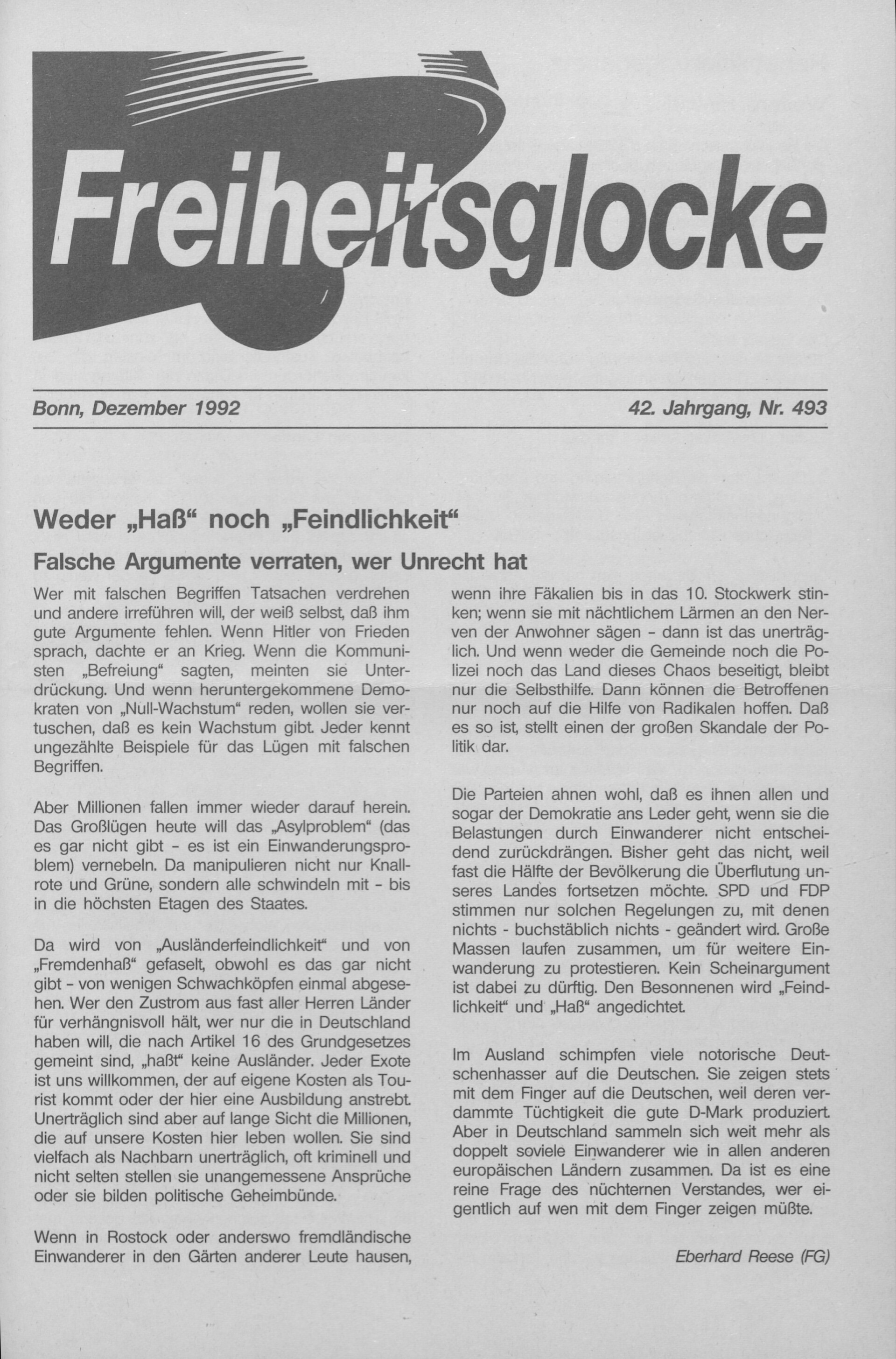 Zeitungsbeiträge der „Vereinigung der Opfer des Stalinismus“ zu ausländerfeindlichen Pogromen in Deutschland, 1992/93