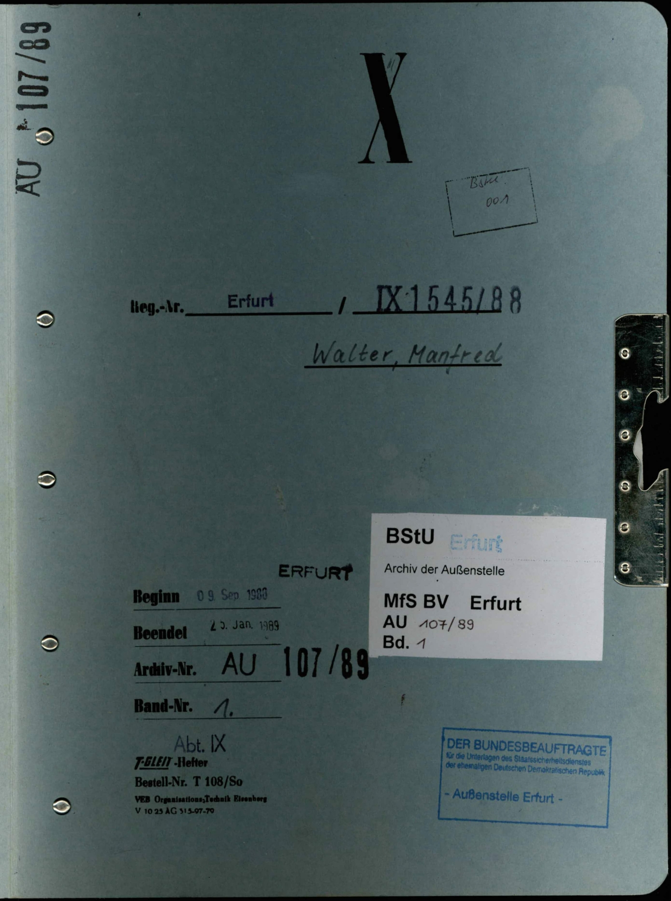 Der Betriebsschlosse WALTER, Manfred [unterstrichen] Rudolf, geb. am 27.3.1952 in Sondershausen, wh.: Sondershausen, Hasenholzweg 36 [eingesetzt]
